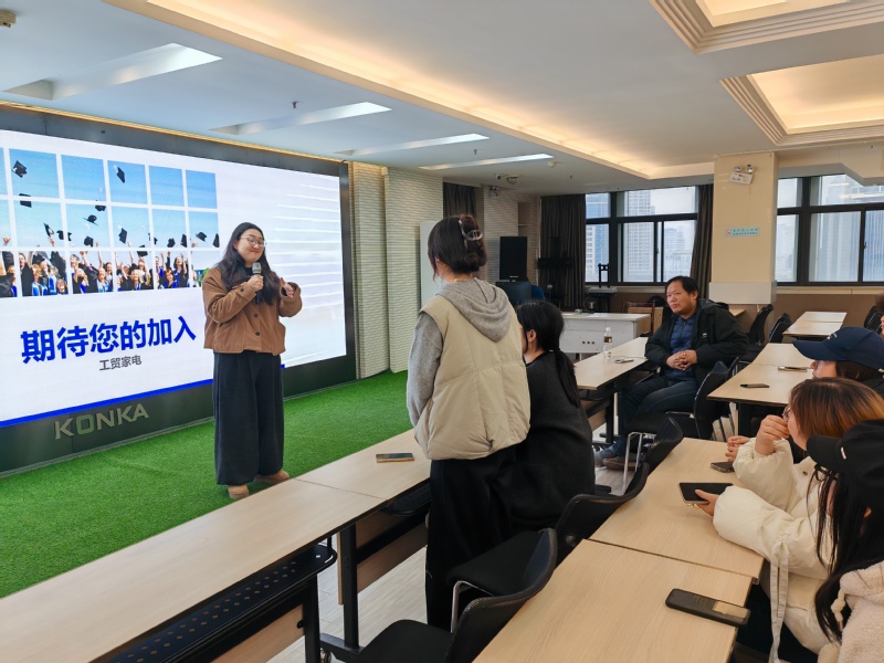 随后,学生走进工贸家电的线下销售大楼。企业讲解员指出,线下场景在高端体验、信任建立与复杂销售中仍不可替代,并介绍门店在融合零售中承担的角色及相关职能需求。许多同学在现场就线下运营、客户服务等岗位的发展路径进行了提问,获得了企业人员的耐心解答。