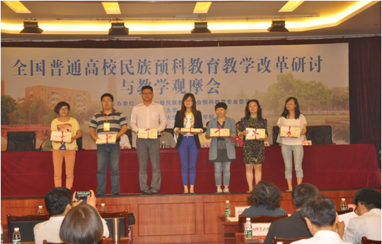 闭幕式上,民族预科教育专业委员会向观摩教学的王炜、张毅等教师颁发了荣誉证书;同时给2014—2015年《中国梦•预科梦—爱之歌》征文活动获奖的121名预科生颁发了获奖证书。