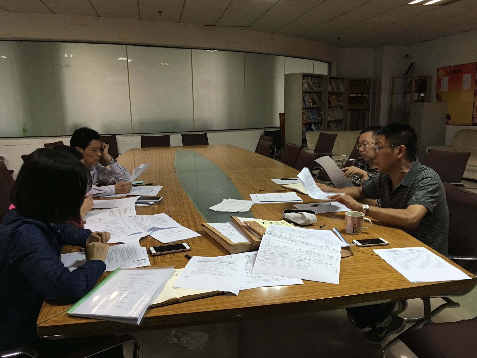 接着将本次申报初、中级人员支撑材料下发给各位评审组员,重点核查一览表填表情况、支撑材料规范性及真实性。在初评过程中,组员们认真审查材料,发现多处填表不规范等问题;要求秘书认真记载,同时马上通知到参评人员来校进行整改。