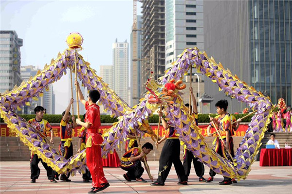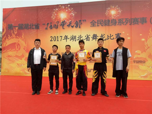 4月15日,第一届湖北省“极目楚天舒”全民健身系列赛事(活动)——2017年湖北省舞龙比赛在武汉洪山广场举办。本次比赛作为全省备战第十三届全运会群众比赛舞龙项目的预选赛,吸引了来自湖北省各地市州的20支队伍进行角逐。beat365中文官方网站舞龙队凭借队员的坚韧和动作超高的完成度,通过全运会省级的预赛,并成功获得自选舞龙项目的银奖。