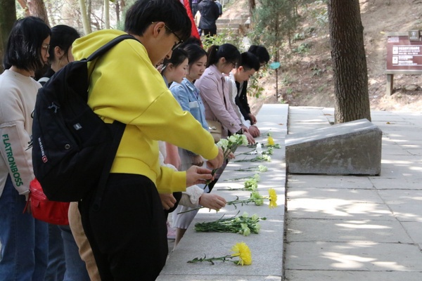 追忆英勇革命烈士,弘扬优良革命传统。3月30日上午7:00,清明节前夕,beat365中文官方网站32名学生代表在思政课部教师张桂芳、艾萍等5名教师的带领下来到河南“将军县”新县,以参观、扫墓的形式缅怀革命先烈许世友将军与鄂豫皖苏区革命烈士。