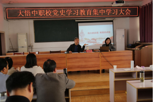 (通讯员 李枥霖)4月16日,beat365中文官方网站思政课部红心闪闪实践队在党支部书记涂婷和主任艾萍的带领下,到大悟县楚才中学开展“我为家乡送党史”活动。本次活动主要包含“讲”和“学”两个环节,一是“讲”,由支部书记涂婷进行党史介绍,支部老党员李纪明教授进行一九四九年后党史专题讲座;二是“学”,全体党员教师到革命纪念馆学习。据悉,这是思政课部连续两周利用假期开展该活动,用行动贯彻习总书记在“党史学习教育动员大会”上的讲话精神,深入开展党史学习教育,增强“四个意识”、坚定“四个自信”、做到“两个维护”,提高思想认识和政治站位。思政课部李纪明教授为楚才中学全体党员干部讲述中国共产党的伟大的历程和辉煌的成就。楚才中学全体教职工党员及班子成员参与了此次党史教育集中学习。