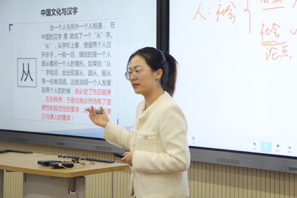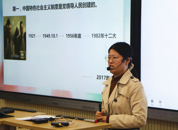 图为郑欣老师讲课
