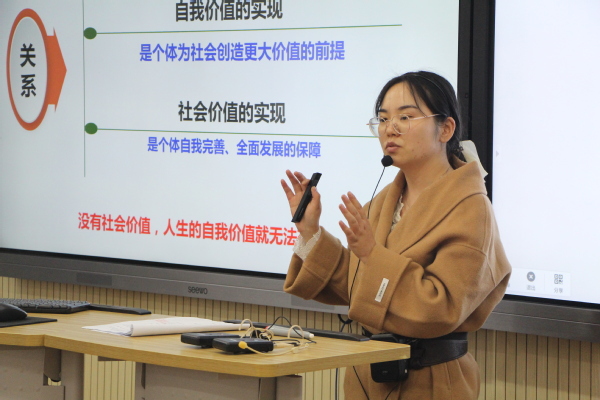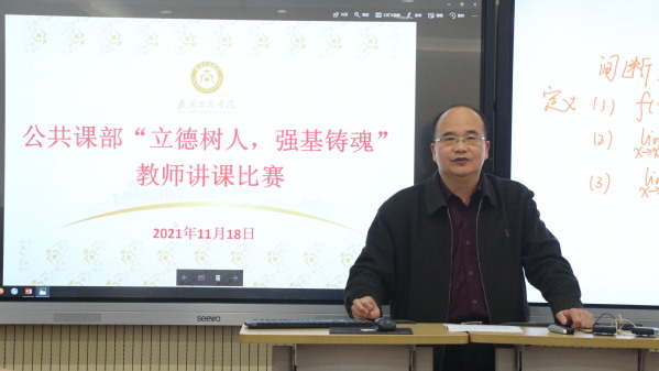 本次比赛由思政教研室副主任种爱凤主持,学校教务部副部长周本爽、公共课部副主任李晶、数学教研室主任程斌、思政教研室副教授李纪明担任比赛评委。比赛要求参赛教师从教学目标、教学设计思路、预期的教学效果及教学反思等方面展开阐述。