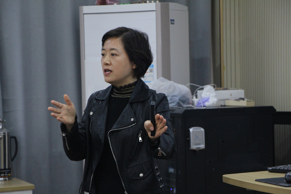 图为董荟楠老师讲课