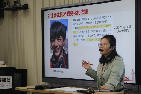 比赛现场,吴妮老师采用双语教学模式,将英语和数学巧妙结合,以先进的教学理念反映学科前沿;田果老师在授课过程中,将中美案例进行对比,内容环环相扣、生动有趣;郑欣老师准确把握课程重难点,内容承前启后、循序渐进;李枥霖老师课堂生动活泼,风格突出,感染力强……比赛过程中,各位教师以独具特色的教学风格,充分展现了各自的教学魅力。