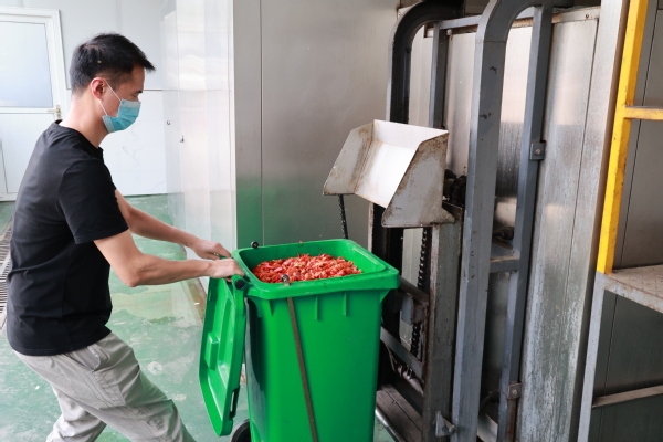 为了建设绿色校园,当天下午,学校还运用校企联合研发的有机垃圾生化处理一体机,及时处理龙虾壳等校庆餐厨余垃圾,将厨余垃圾转化为有机肥料。