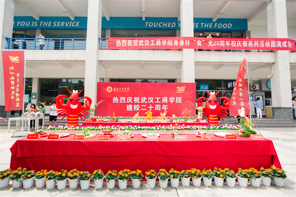 学校党委副书记左宗文介绍,5月21日是小满节气,情满意也满。在学校建校20周年之际举办校庆餐活动,充分体现了学校一直以来“以生为本”的办学理念,打造“武工商一家人”的温馨家园文化,师生共品“家宴”、共庆华诞、共谋发展。此次的小龙虾是由潜江市直供,得到了潜江市政府和相关企业的大力支持。学校将产教融会贯通人才培养全过程,打造校企协同育人新模式,2012年潜江市政府就与学校签订了战略合作框架协议。