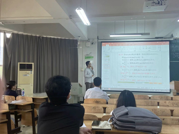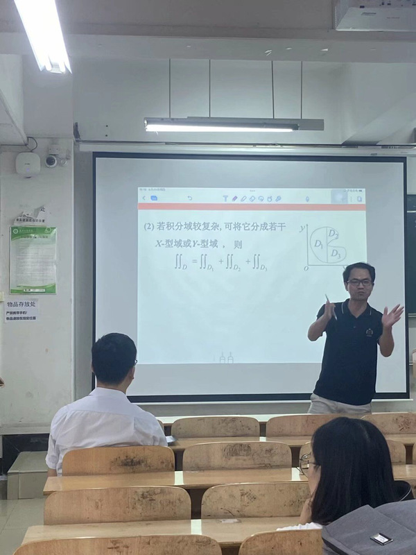 数学示范课由副教授樊艮讲授《微积分基本公式》,本节课导入新颖,能够迅速把学生带进课堂;教学环节紧紧相扣,能激发学生学习的热情;在公式的推导中能不断引导学生思考;在教学内容特别是例题和练习题的设计上由浅到难,适合我校学生的特点,让学生积极参与课堂,充分发挥教学中学生的主体地位,让学生深刻理解了公式的由来、公式可以用在哪里及公式的使用三大关键问题,培养了学生灵活运用知识解决实际问题的能力。示范课结束后廖督导做了简短的点评,充分肯定了樊老师的教学水平,并指出樊老师教学过程非常完整,教学内容设计合理,板书和ppt结合好,板书简洁明了重点突出,数学课充分发挥了ppt的作用并提高了教学效率。