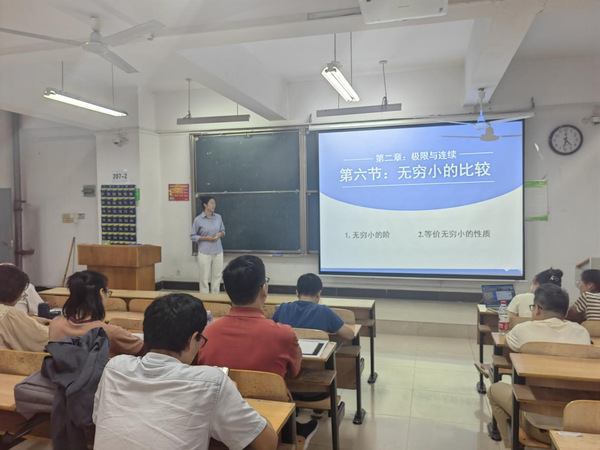 新教师们经过集中听评课、教学资料检查等集体教研活动后,数学教研室新教师蒋一帆、汪琴、张雅静、何家玉、陈巧、秦耸云、邓宗娜共七名新老师依次进行展示。他们自选教学内容和角度,为大家呈现了一堂堂扎实而又有趣的数学课。