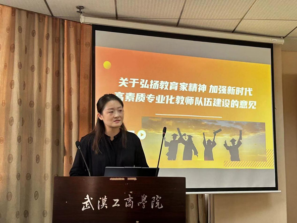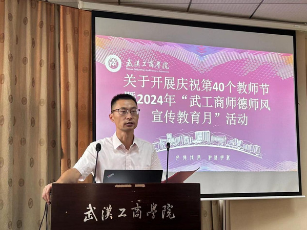 接着,海鹏副书记传达了《关于开展庆祝第40个教师节暨2024年“武工商师德师风宣传教育月”活动的通知》要求,并做了详细的工作安排。该活动时间为8月30日至9月30日,内容涵盖师德专题教育学习、红色教育、法律法规理论学习、“感动工商人物”评选、优秀主题影视剧展播、庆祝召开教师节座谈会、落实教育整改工作等,侧重师风师德建设,提升教师个人素养。