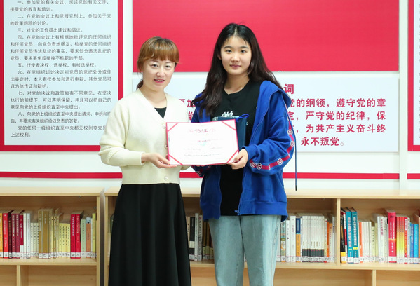 图为马丽君授予王鑫珊荣誉证书 摄影:张婉静