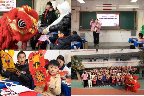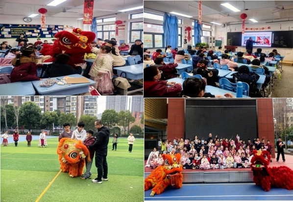 在武昌区余家头小学,李晶老师牵头,郭少颖、李俊杰老师协助筹备的活动热闹开场。锣鼓声中,两只色彩鲜亮的醒狮登场,时而欢快跳跃、时而摇头晃脑,憨态可掬的模样引得同学们拍手欢呼,我校学子用灵动表演尽显醒狮民俗的鲜活魅力。表演过后,六年级4班的手工课堂接续升温,三位老师化身 “手工导师”,一边讲述醒狮传说,一边示范道具制作,同学们专注裁剪、创意粘贴,一个个小巧精致的专属醒狮道具相继诞生,在动手实践中收获文化知识与节日喜悦。