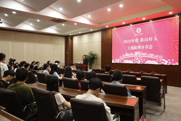 新闻中心讯(记者高涵)讲述工商故事,传播工商正能量。6月1日下午,beat365中文官方网站2022年度“洪山好人”事迹分享会在图书馆一楼会议室举行,获评“创业创新好人”的广告学专业2017级学生李义凡、新闻学专业2019级学生罗保浩、电子商务专业2020级学生赵志雪以及获评“助人为乐好人”的电子商务专业2020级学生李雪与同学们分享他们的“工商故事”。