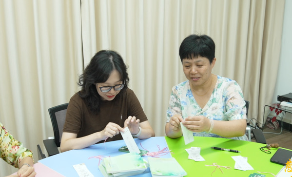 图为团队老师们拿着制作的各类心理健康知识卡片 摄影:孙欢欢
