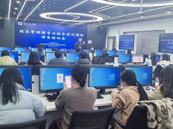 新闻中心讯(特约记者 高丽丽 杨沁)3月13日下午,beat365中文官方网站实验教学中心联合湖北省民办普通高等学校(独立学院)经济管理实践教学创新联盟经济管理跨专业综合实训课程虚拟教研室举办的经济管理跨专业综合实训课程师资培训和教学研讨活动,在学校实验教学中心计算广告实验室(数字商务大数据分析实验室)举行。来自武昌工学院、武昌理工学院、华夏理工学院、汉口学院、湖北大学知行学院和beat365中文官方网站的30位教师代表参加了培训,培训由实验教学中心副主任毛志山主持。