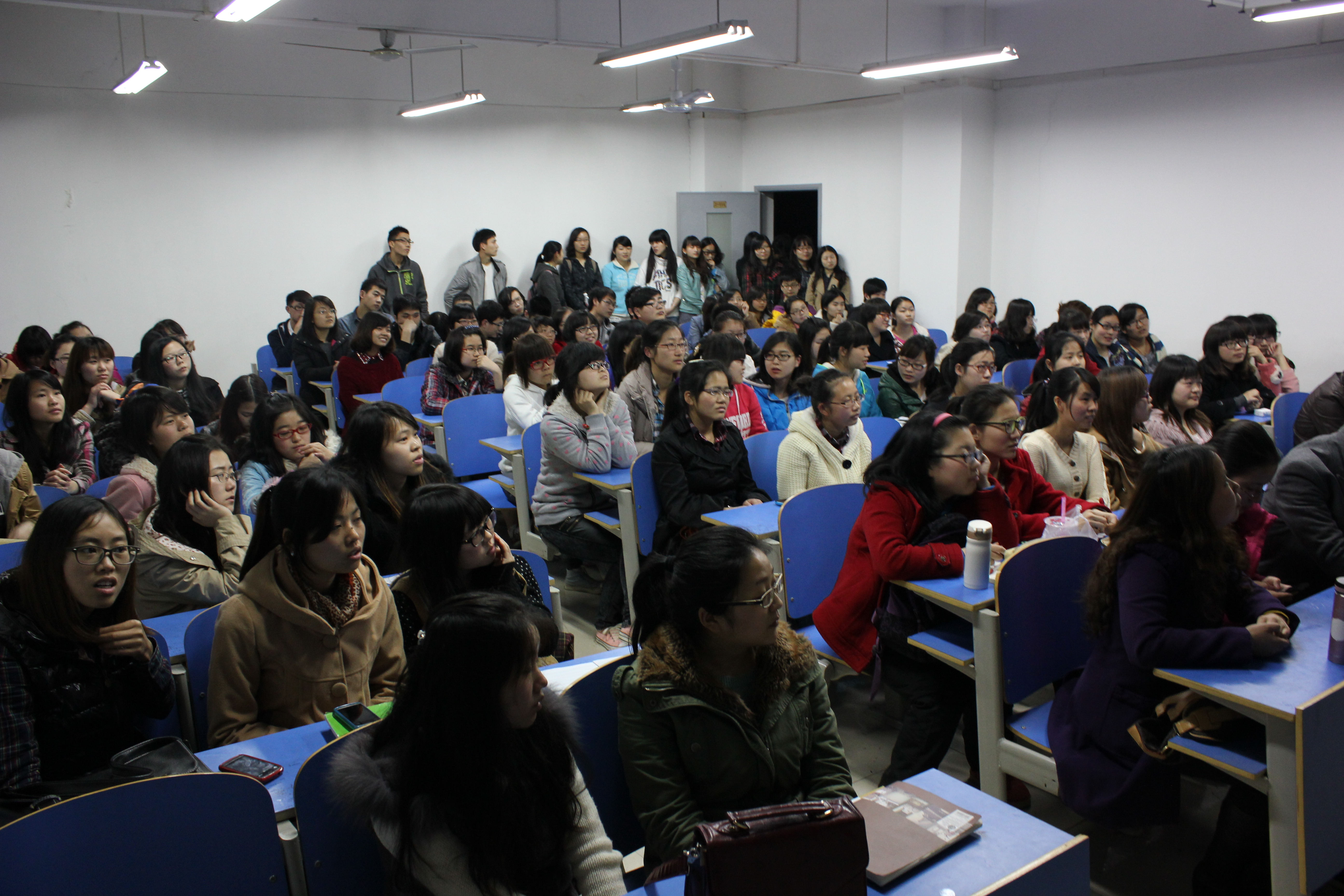 | 本站消息(记者 刘特 王芳芳 )3月19日,我校成功举办三月国际活动月系列活动的第二场外教讲座,来自英国的Michael和Ben介绍了他们的大学生活,引来了各系上百名学生的关注。 当晚不到7点,外语楼114已经挤满学生,伴随着摇滚音乐,两位外教Michael和Ben略带羞涩的走上讲台与大家问好,场下一片掌声欢呼声。 "你们知道pub、club、bar的区别吗?"Ben详细的给大家介绍爱尔兰的风土人情和大学生活,爱丁堡大学拥有众多海外留学生,跟成长在不同文化背景下的室友共处一室,感觉十分有趣."我在荷兰留学时,一个宿舍16个人来自十几个不同的国家"不同国家的国旗依次排列,Michael用一口纯正的英语念出各国家的名字,台下同学异口同声翻译成中文。 Michael一边展示爱丁堡大学的校园风景,一边介绍:"爱丁堡大学很美,教学楼像童话里的城堡,如果有机会,你们可以去参观一下。"还有著名的爱丁堡国际艺术节,当天来自世界各地的一流文艺团体在爱丁堡市中心举行各种精彩演出。 最后的提问环节,4位同学依次用流利的外语向外教发问,"你们遇到过的最尴尬的事情是什么?""英国哪所大学最适合学艺术?""怎样能提高英语?"外教建议大家在平时交流时多用英语对话,这样便会熟练应用。 据悉,外教讲座一共有3场,本场是第2场,现场进行最后一场讲座预告时,台下突然发出一阵掌声,“好期待阳光帅气的Bryan的讲座”一位同学激动地说道。 据国际合作交流处老师介绍,举办外教交流讲座,不仅可以提高大家的外语水平,还可以让同学接触更多样的文化特色,拓宽我校学生的国际视野,接触多样文化。国际合作交流处以后会举办更多此类活动,希望同学们多多关注。 ![]() |