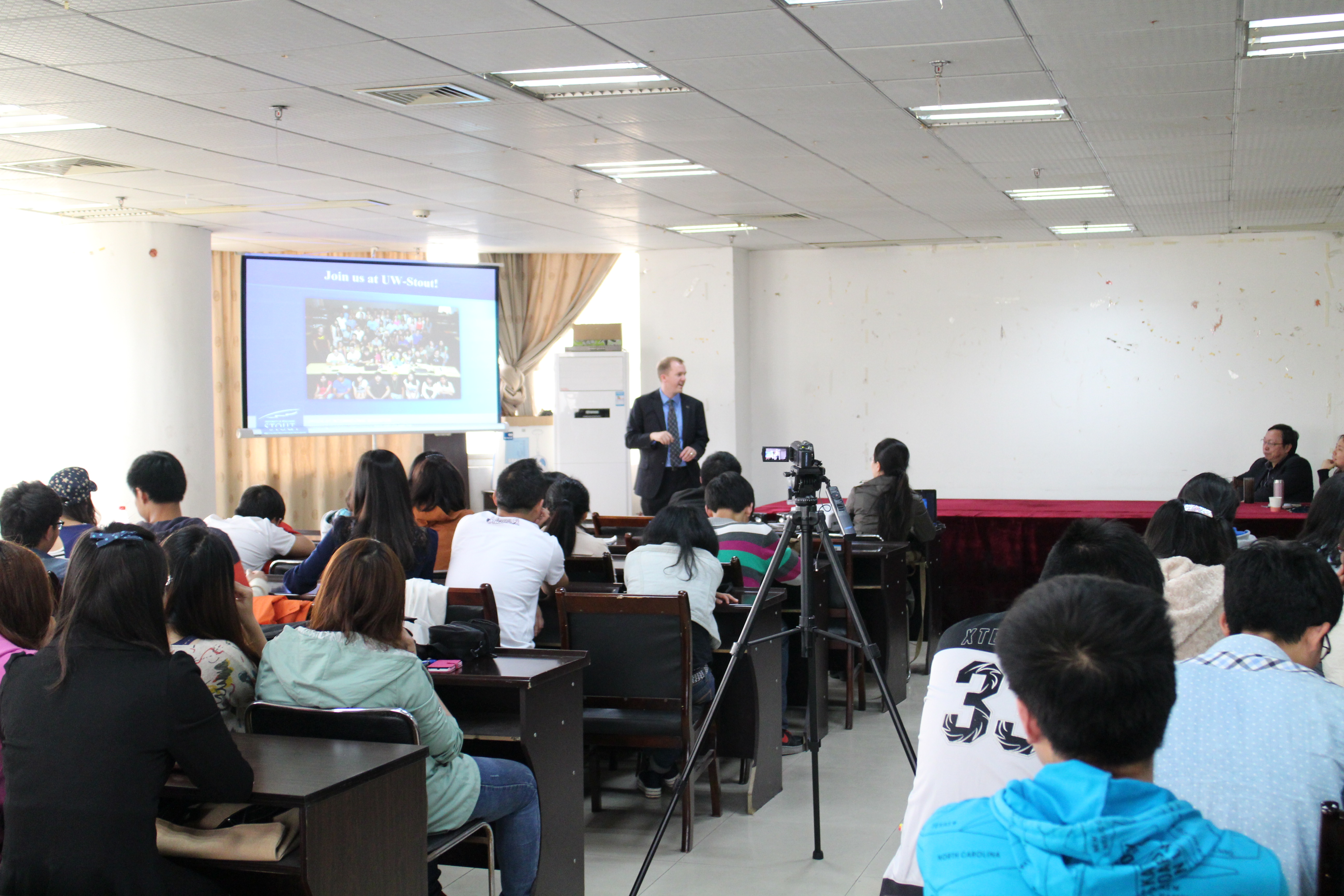 新闻中心讯(通讯员 王芳芳)4月11日上午,威斯康辛大学斯托特校区代表Michael Lee来访我校,国际合作交流处处长阮志坚、副处长马冬玲在第一会议室热情接待了来宾,我校有志于去该校学习、交流的学生也来到了会场。 据悉,威斯康辛大学斯托特校区计划明年选派首批学生来武汉,一批来我校进行短期的交流学习,另外一批由我校联系安排在美资企业实习。 ![]() 会上,双方就前期的课程设计、教学安排、学分互认、实习安排等工作达成了共识。 会谈之后,Michael热情地向我校学生们介绍了威斯康辛大学斯托特校区的基本情况、教育教学特色,还介绍了我校去年8月份赴该校学习交流的交换生情况,提到我校交换生,他由衷地赞叹道:“The students from your university surprised us, they are fantastic!” 据阮志坚处长介绍,我校今年还将派出第二批学生赴威斯康辛大学斯托特校区学习交流。 ![]() |