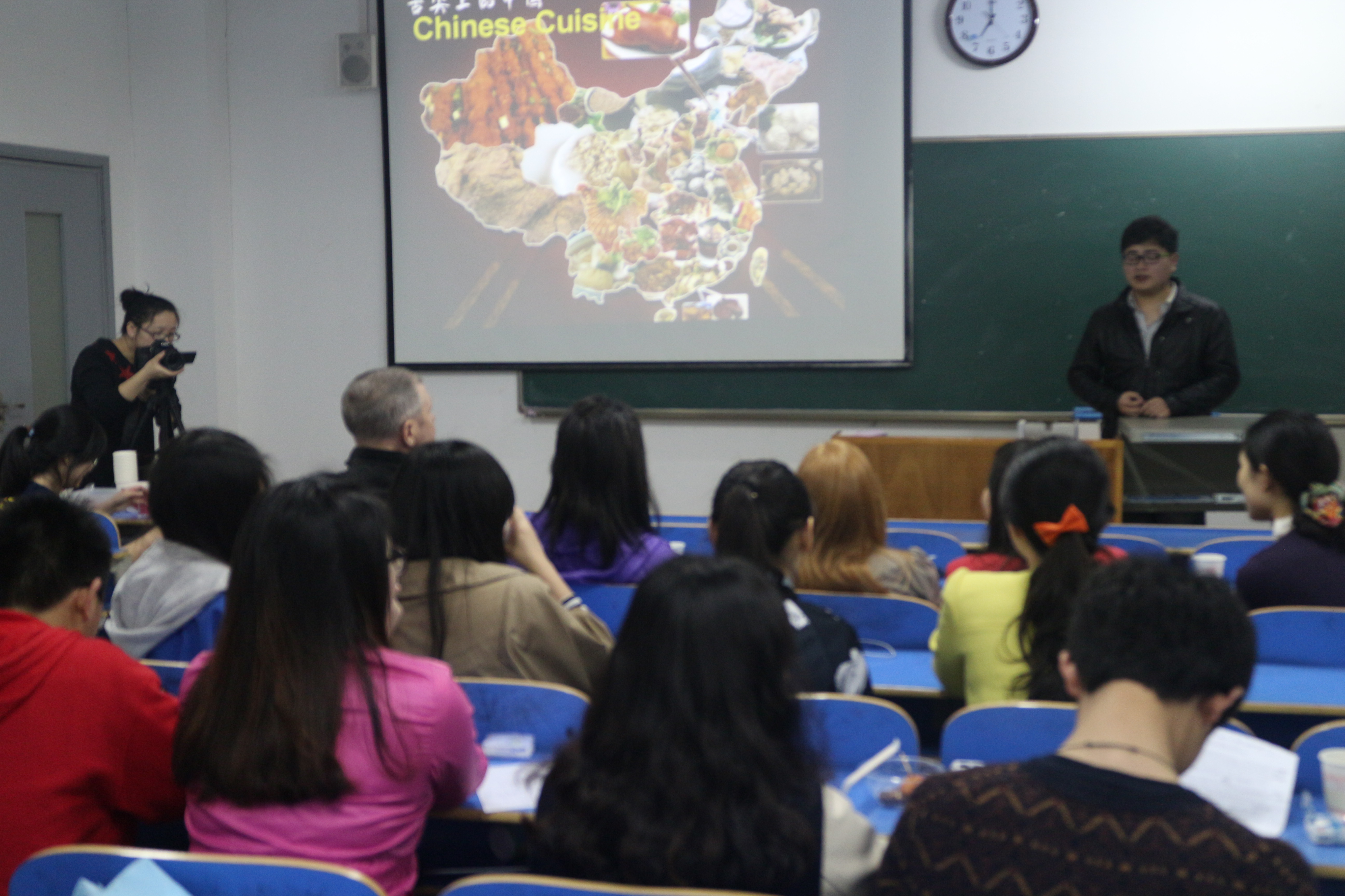 本报讯(通讯员 刘姣姣)“Tonight I try my best to read ‘A Bite of China’。”近日,武汉长江工商学院国际合作交流处举行学生给外教普及中国文化的活动,武汉长江工商学院澳大利亚外教Lyle在活动现场第一次观看了《舌尖上的中国之大自然的馈赠》后对记者大赞中国菜。 当晚,该校工商管理专业大二学生向乾隆以“中国菜”这个主题为外教讲解,他还准备了几道亲手做的中国菜:南瓜饼、烤羊肉串还有炒玉米等,外教及来听课的学生一边吃一边观看《舌尖上的中国之大自然的馈赠》英文版视频。澳大利亚外教Lyle坦言这是他第一次看《舌尖上的中国》,“简直太赞了,晚上就回去再好好看一遍,好好了解中国菜”。 ![]() “中国古语有云,民以食为天,而中国又是世界上除土耳其、法国之外的三大烹饪王国之一,在做菜上是非常讲究的,中国地大物博、历史悠久形成了八大菜系,那是哪八大菜系呢?”向乾隆抛出这个问题后引起了外教和同学们的热烈讨论。“武汉菜,武昌菜…..”Lyle的幽默回答令人捧腹,最后终于在同学们的帮助下回答出来了,向乾隆一一介绍了粤菜、徽菜、川菜等菜系的由来及特色菜,比如川菜中有名的麻婆豆腐、粤菜中的烤乳猪。讲解过程中,各种中国菜的神英译更是将课堂推向了高潮,“Red burned lion head,红烧狮子头可不是真的将狮子的头烧了啊”。 “My favorite Chinese dish is 西红柿炒鸡蛋,My wife likes the蘑菇鸡蛋汤”Lyle老师用中英结合的语言对记者说起对中国菜的热爱。同样来听课的Liz老师也说起自己吃过很多中国不同地方的菜,比如广东菜、吉林菜等。 |