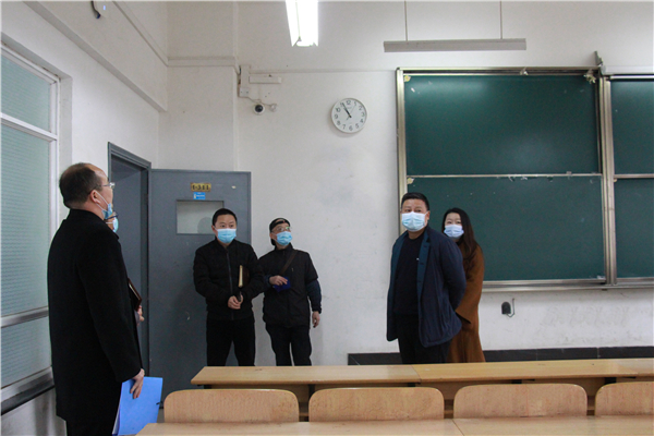 新闻中心讯(记者 万风 摄影 孙欢欢)为确保新学期教学科研各项工作顺利开展,为全校师生营造优良的学习、生活环境,2月26日上午,学校党委书记刘生元,副校长桂裕清、张俊,党委副书记左宗文,董事长助理刘小英,校长助理狄奥等校领导带领学校教务部、学工部、宣传策划部、后勤管理部、保卫部、图书馆等职能、教辅部门的负责人,实地检查学校新学期的各项开学准备工作。