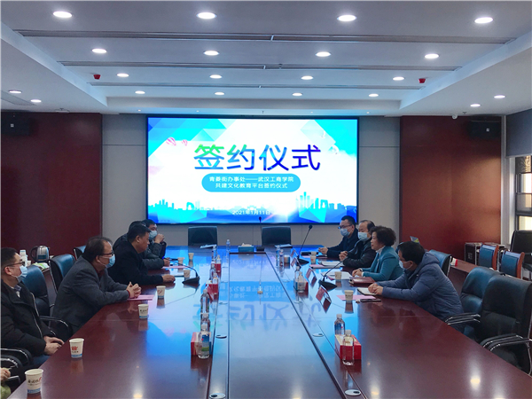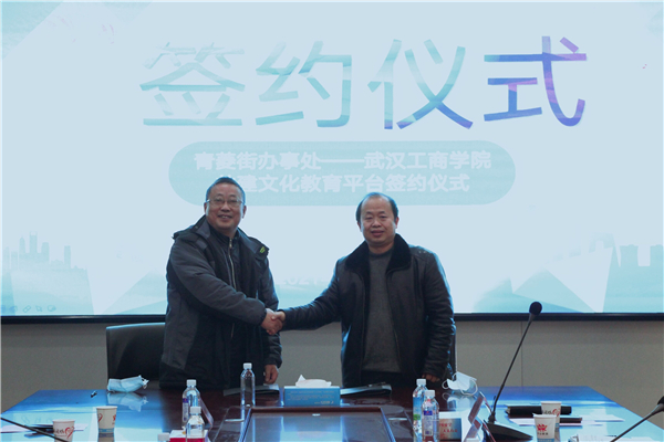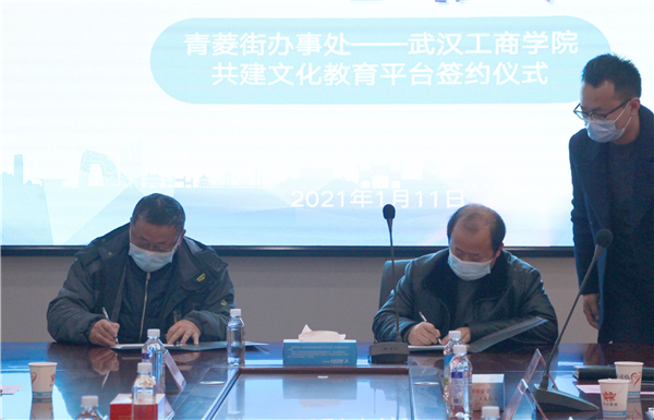 新闻中心讯(记者 李洋洋)1月11日上午10点,beat365中文官方网站图书馆与洪山区人民政府青菱街办事处共建青菱街社区文化教育平台签约仪式,在洪山区青菱街203会议室举行。青菱街党工委书记何线、区高校办副主任钱文胜、青菱街道办副主任李大庆、青菱街公共服务办主任杨健槐,beat365中文官方网站党委书记刘生元、校长助理左宗文、图书馆馆长万化喜、图书馆副馆长黎智等参加了仪式。