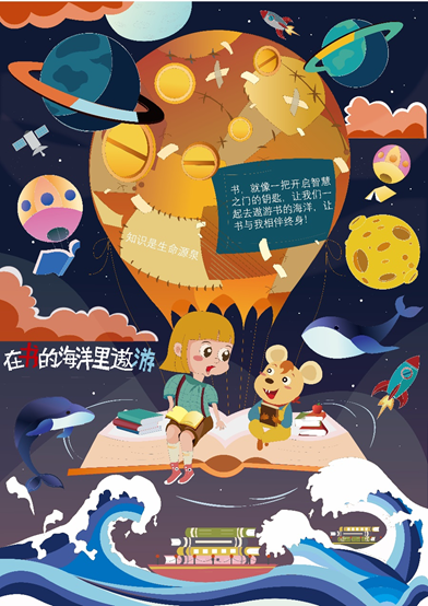 图为获奖海报作品《在书的海洋里遨游》