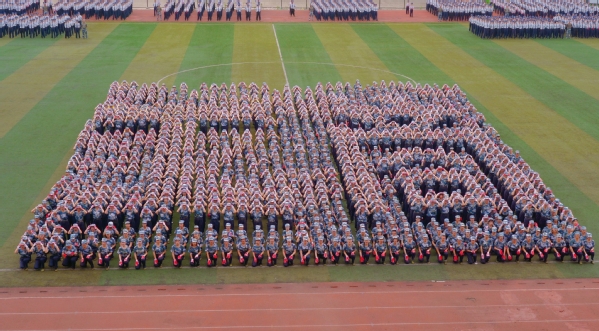 图为女子花样方阵摆出”工商“字样 摄影:赵宸毅