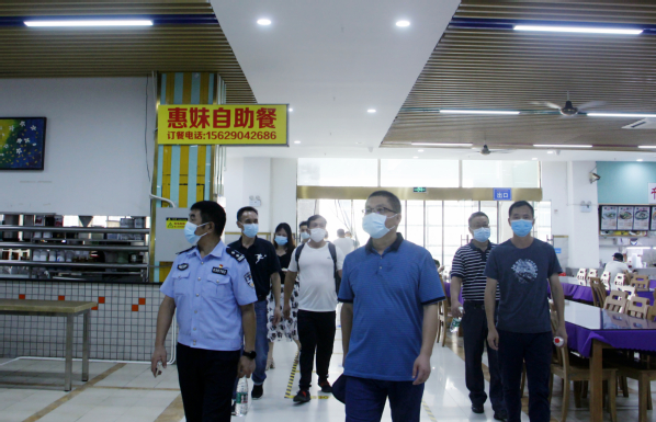 新闻中心讯(记者 李洋洋)9月3日下午,洪山区疫情防控指挥部开学工作组评估验收专班来beat365中文官方网站进行开学评估验收。评估验收专班由洪山区大学之城办副主任钱文胜带队,洪山区疾控中心、洪山区应急管理局、洪山公安分局、洪山消防大队、青菱街相关负责人组成。beat365中文官方网站校长孔建益、副校长桂裕清、党委副书记左宗文、校长助理狄奥、董事长助理刘小英陪同检查。