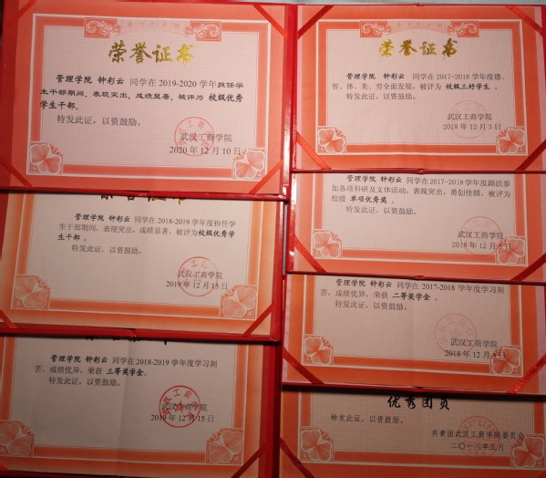 据了解,钟彩云在大学期间不仅成绩优异,且一直担任班长,先后获得了校级优秀团员、校级三好学生、校级优秀学生干部、优秀毕业生等荣誉称号;组织带领班级同学斩获校级先进班集体荣誉称号。此外,她还在学校电视台学习摄像和后期剪辑,并担任摄像部副部长,参与制作的作品获第八届“视友杯”中国高校电视奖专题类全国二等奖等奖项。