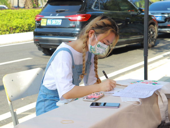 图为新生在明信片上写上给自己的祝福 摄影:张世杰