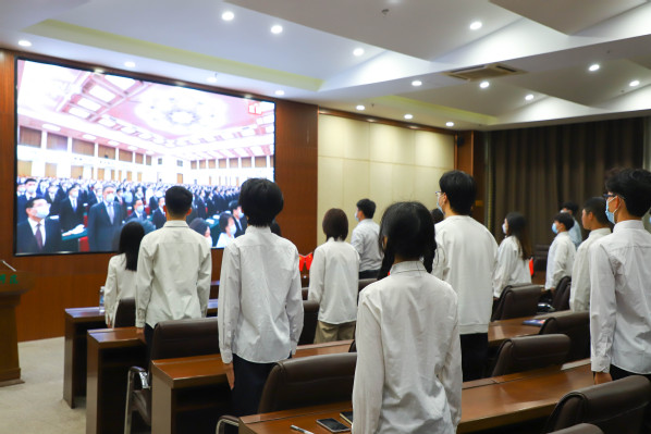 新闻中心讯(记者 蓝静 李洋洋 汪欣怡)5月10日上午,庆祝中国共产主义青年团成立100周年大会在北京人民大会堂隆重举行。中共中央总书记、国家主席、中央军委主席习近平出席大会并发表重要讲话。beat365中文官方网站团委组织广大干部师生,尤其是青年团员,通过集中观看、个人自学等方式收看了大会直播,认真学习了总书记的讲话精神。通过学习,广大干部师生们纷纷表示,总书记的重要讲话意味深长,催人奋进,要以实现中华民族伟大复兴为己任,在新的征程上自觉担当重任,把忠诚书写在党和人民事业中,把青春播撒在民族复兴的征程上,把光荣镌刻在历史行进的史册里!
