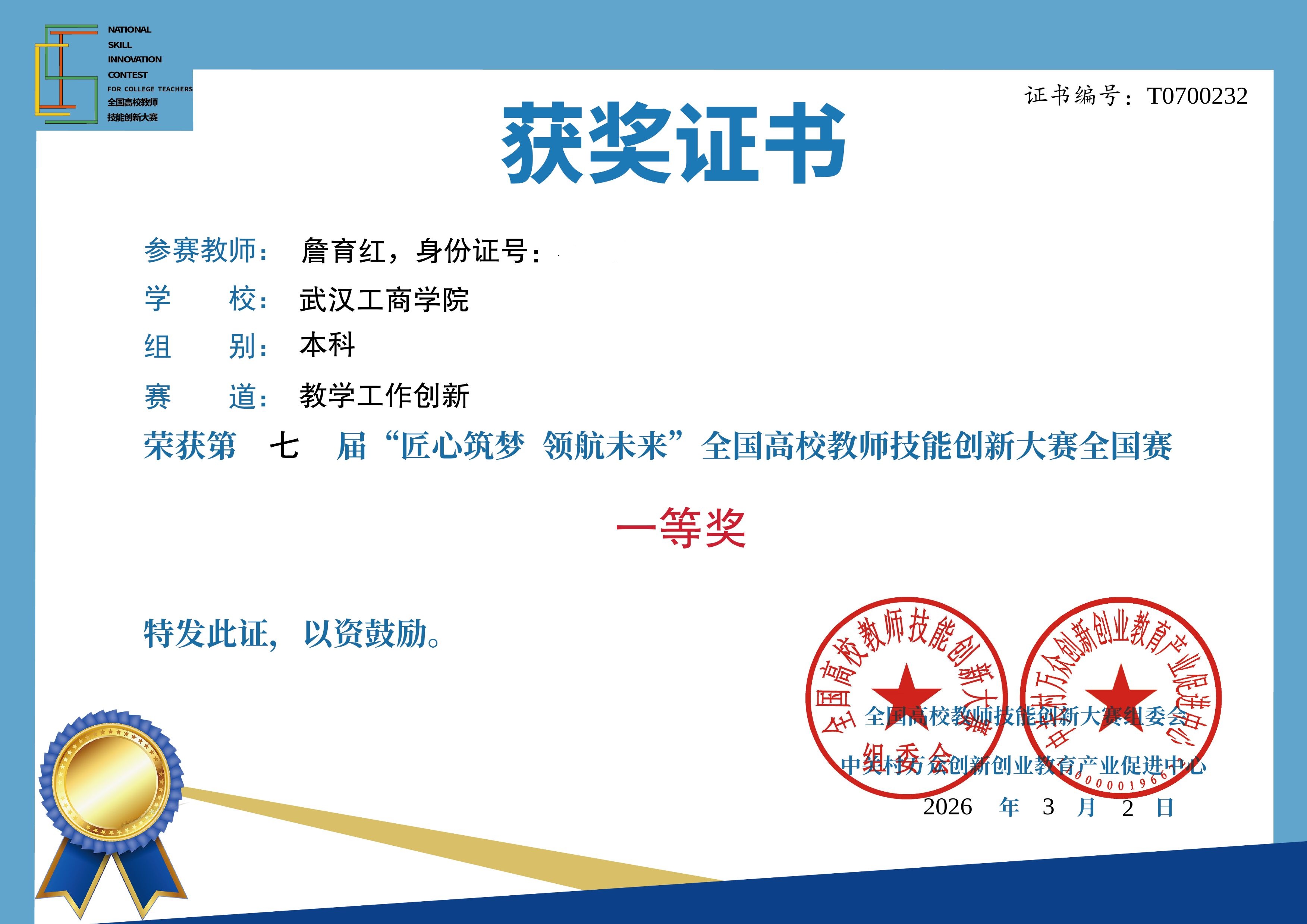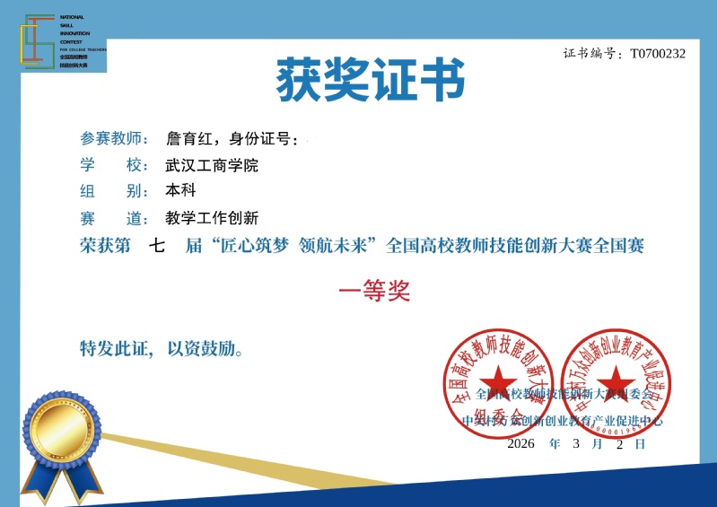 (通讯作者:王梓琦)近日,第七届“匠心筑梦 领航未来”全国高校教师技能创新大赛复赛成绩正式发布。武汉...
