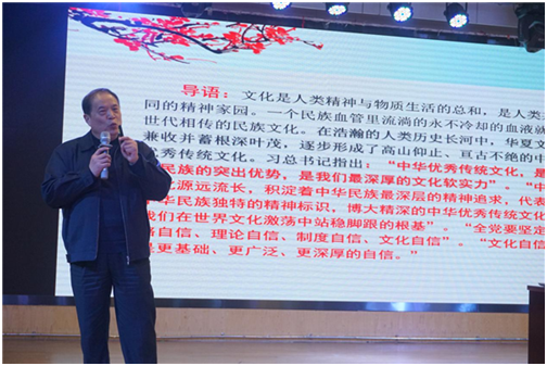 讲座一开始,桂汉良教授就从中华文化五千年渊源讲起,他认为文化是物质和精神的总和,并将文化分为物质文化、制度文化、精神文化三大类。桂汉良教授还从中国文化发展历程出发,谈到中国古代的四大发明时,他说道:“四大发明对人类发展进程有着巨大贡献,甚至流传全世界,是我国古人智慧的结晶,更是优秀的传统文化。”他还借用法国思想家伏尔泰的名言“如果没有中国的四大发明,人类的进步将会推迟几百年,甚至上千年”,以此来激励在场的学生要继承和发扬中国的优秀传统文化。紧接着,桂汉良教授又介绍了中国的教育、中医、武术和书法等传统文化,让同学们更深刻的领略中华优秀传统文化的丰富内涵。