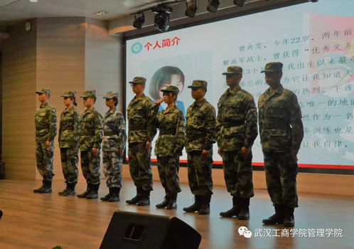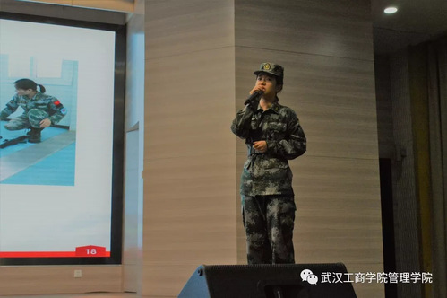 接下来是田维胜同学的精彩分享,他曾是中国人民解放军陆军野战军硬骨头六连一排一班的一名战士。“战士”一词让我们想到,我们作为一个普通人,在国家危难时也要挺身而出,在国家发展时要贡献自己的力量。“当兵后悔两年,不当兵后悔一辈子”是田维胜同学的军旅感想;每天5公里跑是他的军旅常态。他说:“没有什么值不值得,我们用血和汗水的实际行动捍卫了我们的荣誉,作为军人就只有打杖和准备打仗,哪怕我现在脱下军装我也骄傲我曾是中国人民解放军的一员”。他的精神是我们要学习的,也是我们要落实在实践中的,让我们从现在开始,把自己当作一位军人来要求自己,时刻准备着为国家做贡献。