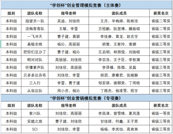 据悉,“学创杯”全国大学生创业综合模拟大赛是由高等学校国家级实验教学示范中心联席会经管学科组主办的一年一度的全国性赛事,也是被教育部认可的84项全国大学生学科竞赛之一。该比赛旨在切实培养广大青年学生创新创业意识,提升创新创业能力,深化创新创业实践。此次学校师生在大赛中取得优异成绩充分展示了学校在创新创业教育以及商科人才培养方面取得的成果。未来,学校将以此为契机,聚焦国家创新驱动发展战略,秉承“以赛促学,以赛促教” 的教学理念,继续在双创教育理论与实践方面寻求新举措、新路径、新模式,以高水平创新创业教育和商科人才培养助力学校高质量发展。