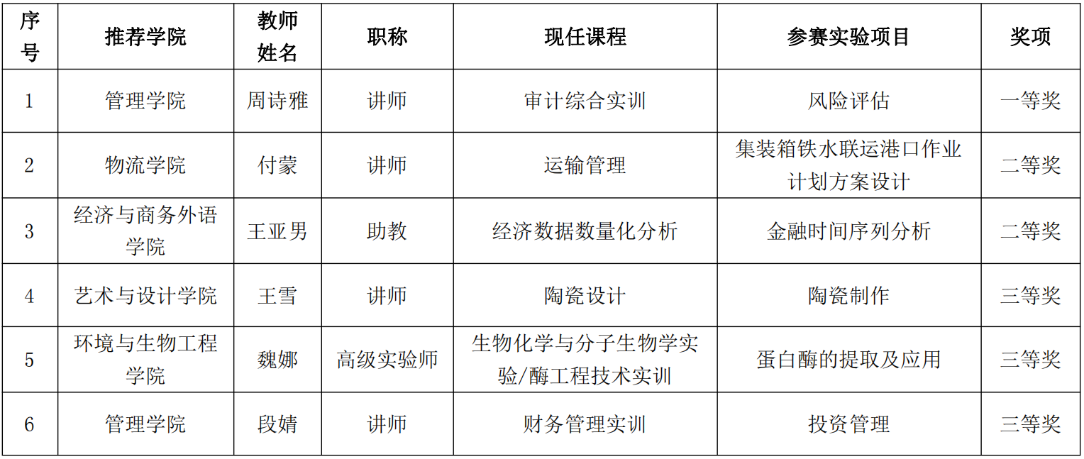 此次比赛获管理学院领导高度重视,积极组织教师参加比赛;参赛教师们认真准备,辛勤付出,展现了管理学院教师的良好风貌。此次奖项的获得,不仅是对两位老师教学能力的认可,也是管理学院教学成果的体现。管理学院的教师们将继续努力,推动实验教学改革,提高教学质量,为我校人才培养做出更大的贡献。
