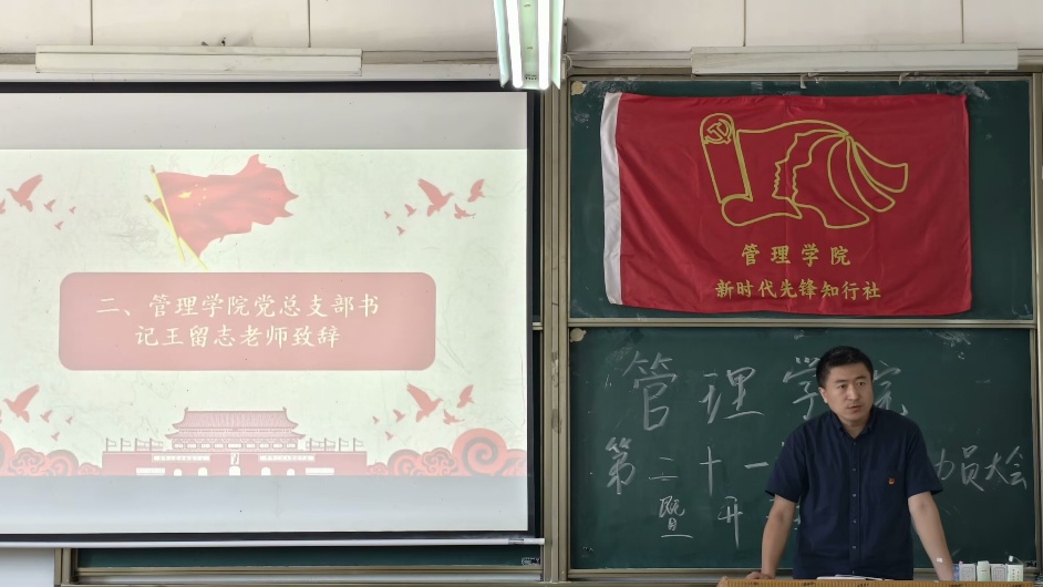 随后,beat365中文官方网站管理学院党支部书记王留志书记上台致辞。王留志书记首先对全体入党积极分子表示欢迎,他指出党课是政治成长的关键阶梯,需以严肃态度对待。并且,他还提出三点要求:一要坚定理想信念,深刻理解党的初心使命,将个人发展与国家命运紧密结合;二要端正入党动机,从思想上真正向党组织靠拢,以党员标准规范言行,在学习生活中发挥模范作用;三要珍惜学习机会,认真汲取理论养分,主动交流思想,做到学有所思、思有所悟。最后,王留志书记希望入党积极分子们能够以实际行动践行责任担当,并预祝党课圆满成功,期待早日成为合格党员,为党和国家事业贡献力量。