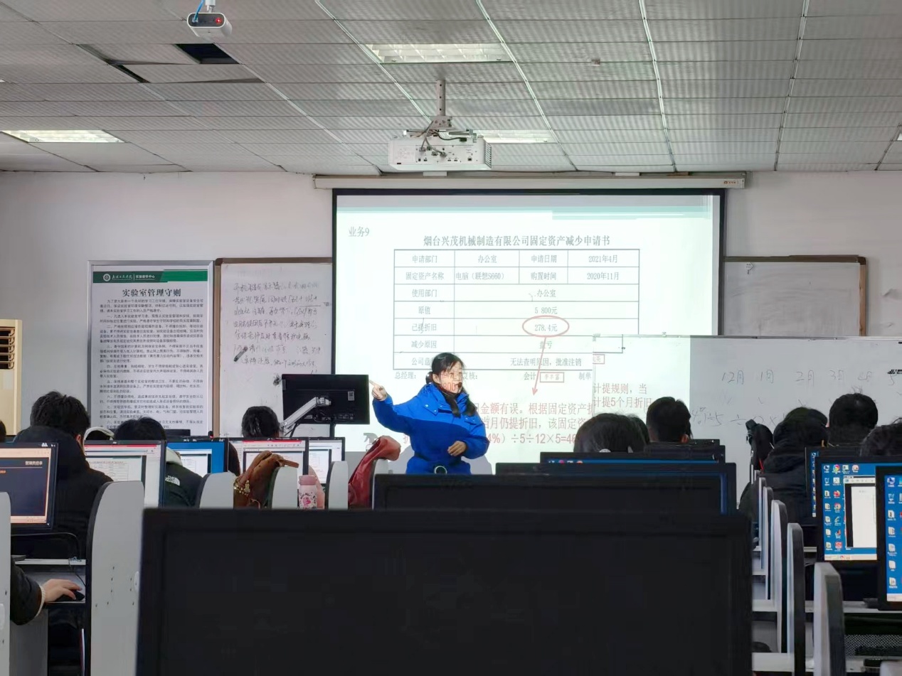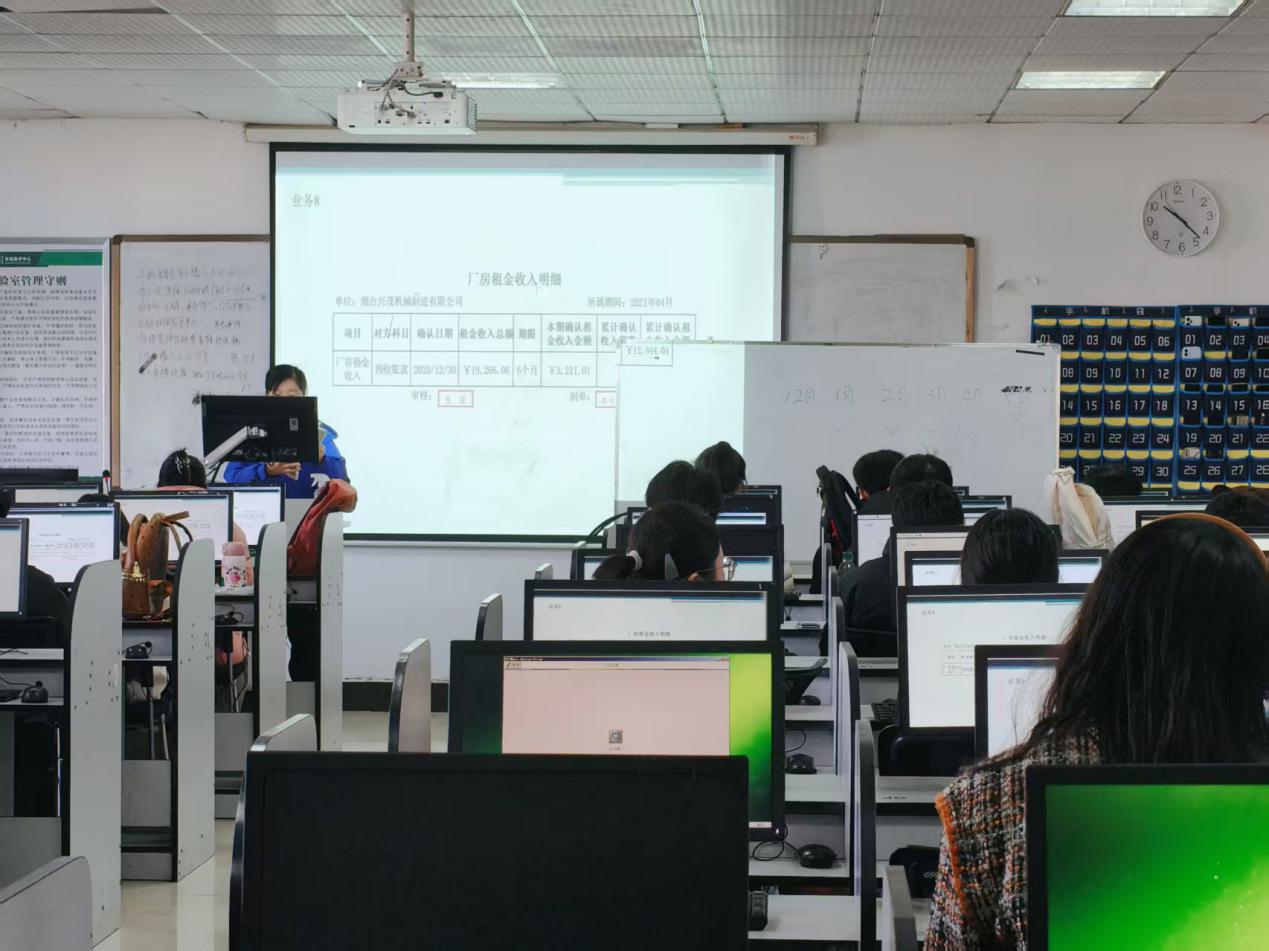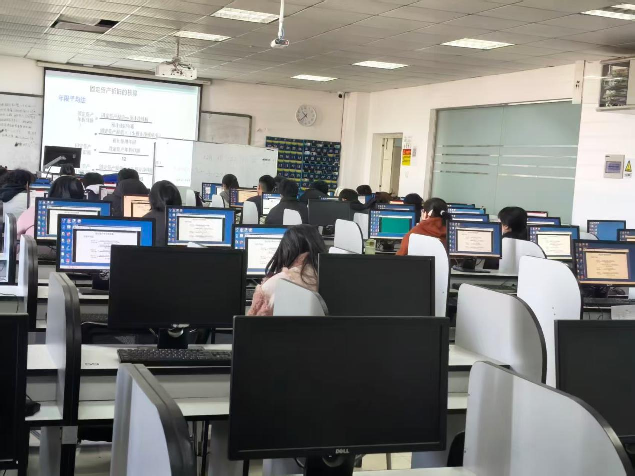 课堂上,王老师以确认租金收入为切入点,强调预收账款与其他业务收入会计处理的区别,通过案例分析指导学生完成租金收入分录。随后,讲解盘亏资产处理流程,并重点演示了账实不符时的账务调整方法。接着,带着同学们系统地回顾了固定资产折旧计算公式,并以电脑为教学工具,逐步演示了月折旧额的计算过程,重点强调了如何在实际工作中获取并应用残值率、使用年限等关键参数。
