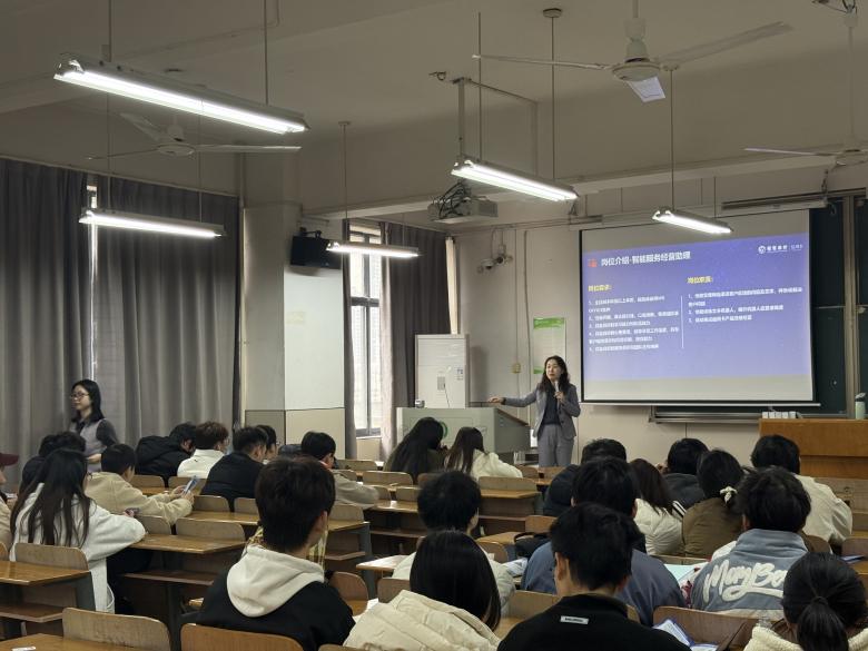 宣讲环节中,陈主任以“金融科技赋能下的运营新生态”为主题,通过品牌VCR和数据图表,系统介绍了招商银行信用卡中心的发展历程、业务版图及核心竞争力。她重点解读了信用卡运营体系的核心价值,从客户生命周期管理、风险控制优化到数字化运营创新,全方位展现了运营岗位在业务发展中的关键作用。针对同学们关注的岗位需求,她详细说明本次招聘涵盖的客户关系运营、数据分析运营、权益体系运营等三大类岗位的职责要求,强调"兼具数据敏感度与服务意识"的复合型人才培养方向。