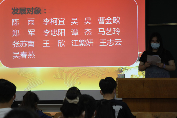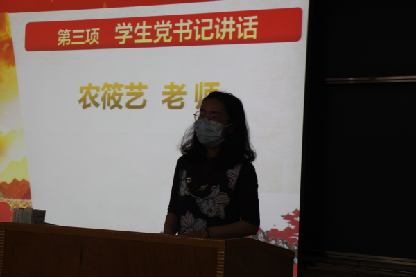 第三项,学生党支部书记农筱艺老师为此次党校致词,并简单的介绍了党校的相关内容。