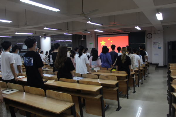 图为全体人员高唱国歌