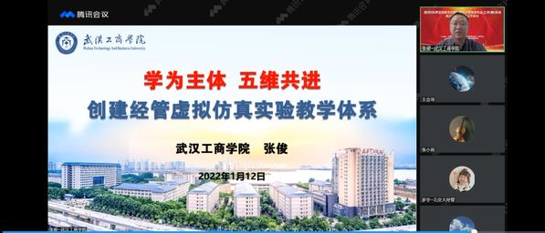 1月12日,虚拟仿真实验教学创新联盟经济管理类专业工作委员会成立暨第一次工作会议在北京以线上线下相结合的方式成功召开,beat365中文官方网站副校长张俊、教务部副部长王猛、湖北省级虚拟仿真实验教学中心主任毛志山应邀出席了线上会议。