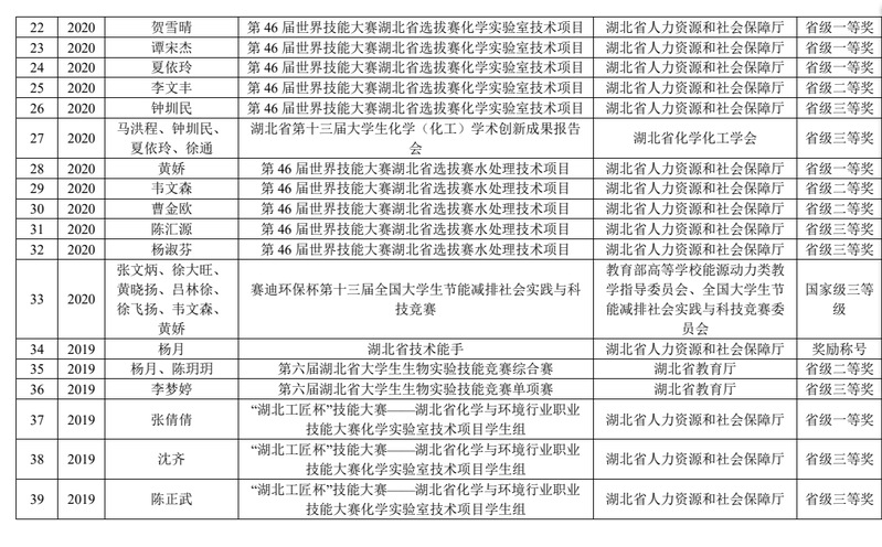 环境与生物工程学院学生学科竞赛获奖情况一览表