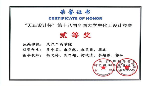 在本次大赛中,环生学院参赛团队凭借扎实的专业知识、出色的设计能力和团队协作精神,经过初赛、复赛及决赛的层层筛选与激烈比拼。最终,吴中星(22级生物制药本3)、朱乔林(22级生物制药本3)、朱盈盈(22级环境工程本3)、周鑫(21级环境工程本5)同学在“天正设计杯”第十八届全国大学生化工设计竞赛中荣获二等奖;苏瑀(22级环境工程本4)、陈烁(22级生物制药本1)、邓伊宁(22级环境工程本4)、王思思(22级生物制药本1)、洪天然(22级生物制药本1)同学在2024年华中赛区大学生化工设计竞赛中荣获三等奖。这份荣誉,凝聚了参赛学生的辛勤汗水与不懈努力,也离不开杨文婷、龚乃超、柯斌清、李超男、郭品等多位指导老师的悉心指导。