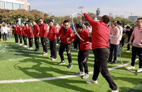 三尺讲台外,老师们也是赛场主角。在趣味项目中,他们暂别教案与粉笔,化身活力健儿:旱地龙舟项目,老师们齐心协力、同步冲刺;一圈到底项目,老师们灵活穿梭、展现默契,用行动践行“快乐工作,健康生活”的理念。师生同场竞技的画面,不仅展现了环生学院的活力风采,更凝聚了团队向心力。