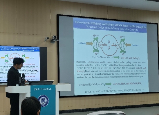 会议期间,Dr. Jawad Ali应邀作了题为《整合还原与氧化位点的双中心催化剂:加速氧化还原循环与活性位点再生以增强实际废水处理中的稳定性、可重复使用性及催化效率》的学术报告。Dr. Jawad Ali报告了他及其团队在高级催化废水处理技术方面的创新成果,重点阐述了通过设计双中心富电子催化剂结构,实现活性位点再生与催化效率提升的最新机制,引发了在场学者的热烈讨论与高度评价。