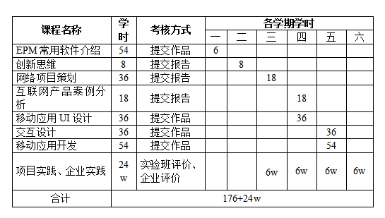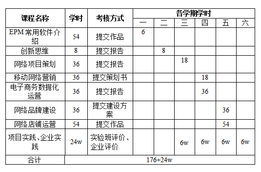 第二阶段:第四至第六学期。按照EPM实验班关键课程进行教学和安排,并采用学生策划和开发的互联网产品、电子商务网站运营情况作为评价的依据。
