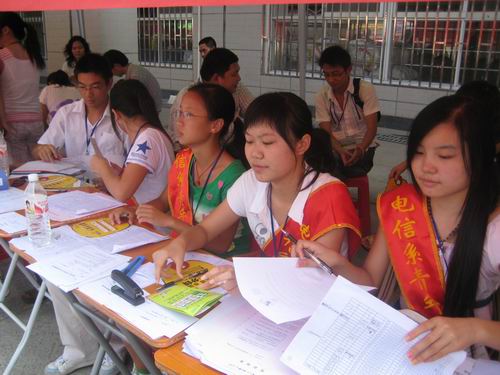 每年九月份新生报到,我系主任带队,副书记、辅导员、分团委书记、学生会干部将进行迎接新生工作,在炎日的夏日,大家保持一颗火热的心位新生服务,让学生安心在我系读书,让家长放心在我院成才。