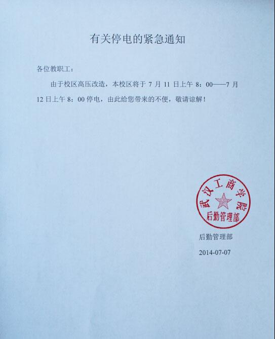 2014年7月11日紧急停电通知