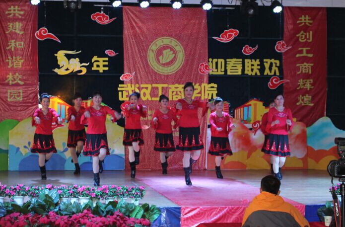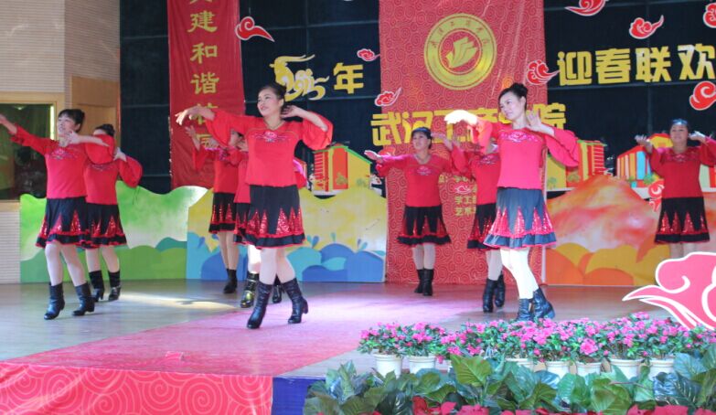 由后勤工会选送的节目是广场舞串烧 《 我爱广场舞、张灯结彩、小苹果》,由 9名保洁组成的舞蹈队,身着红裙,喜气洋洋,时而动感四射,时而民族风十足,跳到到最后一首小苹果时,全场氛围热烈,领舞青春版小苹果和后面广场舞版小苹果相映成趣,最终赢得满堂喝彩。最后获得团体第三名的好成绩。
